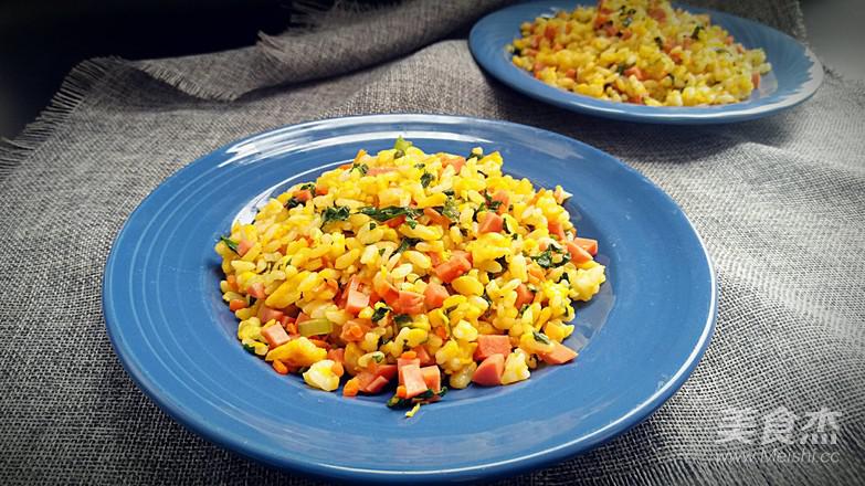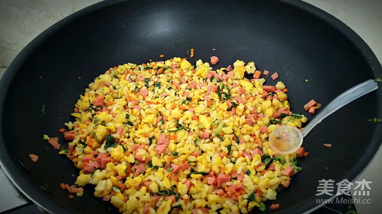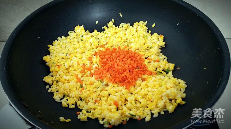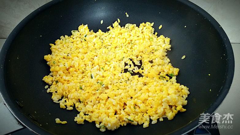 用雞蛋把米飯寖泡一會,米粒柔軟不硬。\n用土雞蛋炒米飯顏色格外的金黃。
