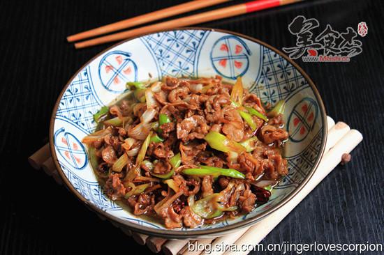 4.繼續翻炒到沒有水汽后,放入大蔥,再炒幾十秒,大蔥變軟以后就可以出鍋了