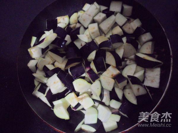 鍋里放適量油、放入茄子小火把茄子炒軟