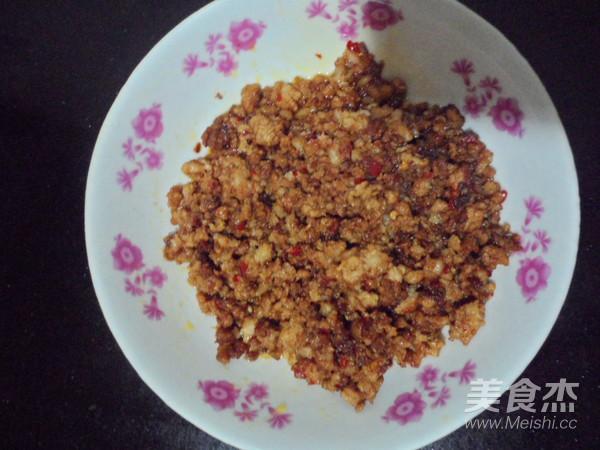 肉末加入鹽,料酒,蒜、姜攪拌均勻,熱油鍋,放入肉末、豆瓣醬翻炒至變色放入碗里