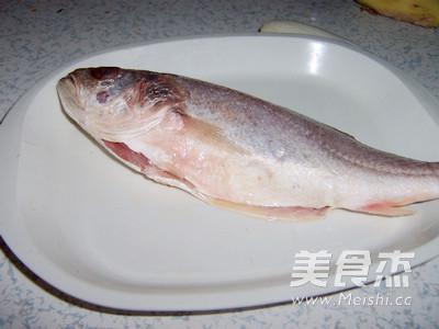 在魚身上打上花刀,用精鹽、白酒抹在魚身上腌制入味。把蔥姜片放入魚身和膛里腌制10分鐘