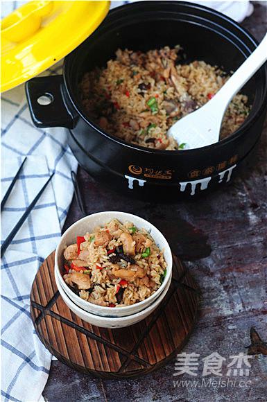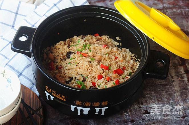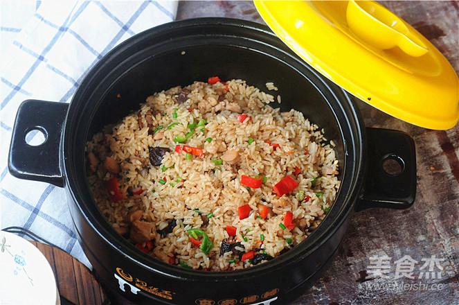 11.米飯煮好后開鍋,將青紅椒倒進(jìn)去,翻拌均勻即可