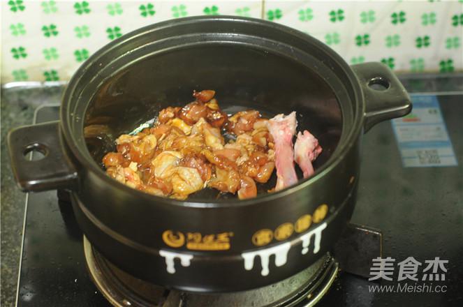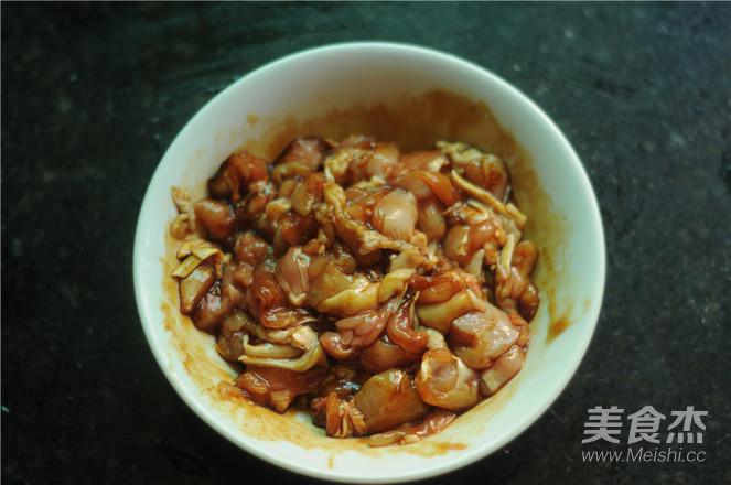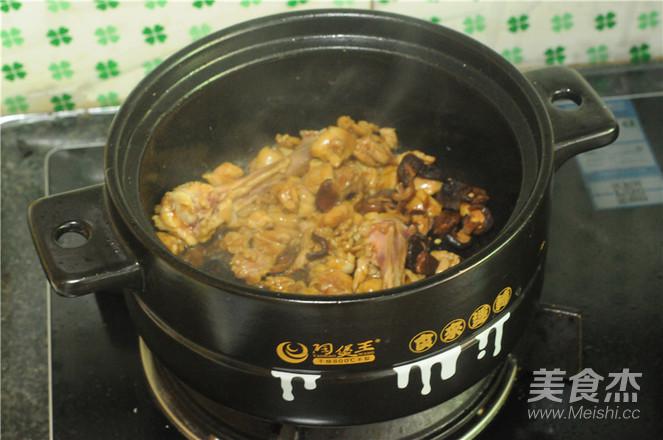 7.雞肉變色后加入香菇丁,翻炒均勻