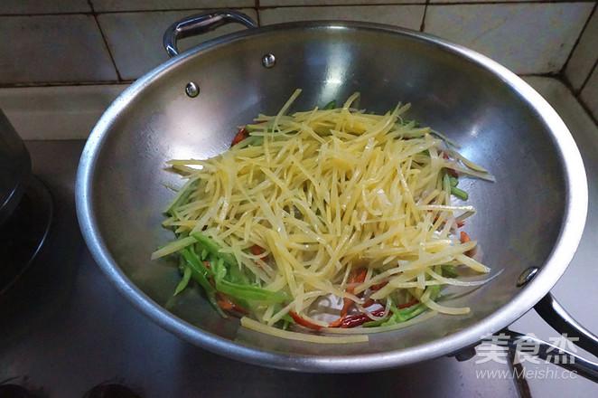 待鍋中水燒開后,把土豆絲倒入焯燙1分鐘撈起