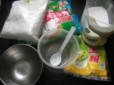 2.準備粘米粉 鹽 油 生粉 澄面等材料