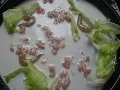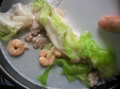 16.加入肉末 蝦 生菜大火蒸一分鐘拿出