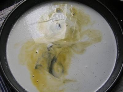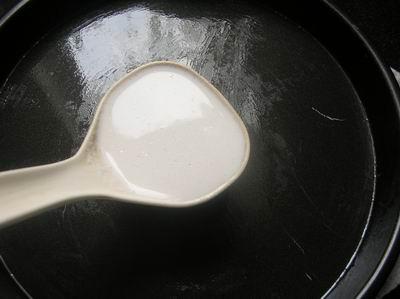 5.加入鹽與油及生粉澄面均勻攪拌成稀粉漿