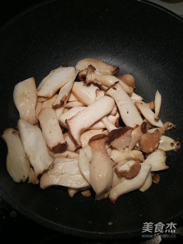 放入杏鮑菇 撒鹽 倒入準備好的白酒 翻炒