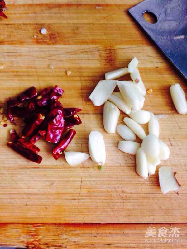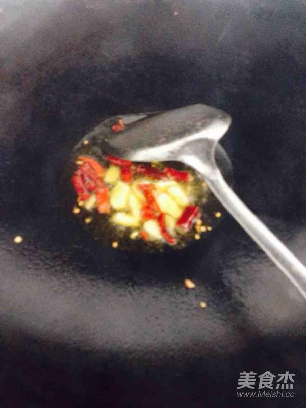 鍋里倒入適量的油燒熱后,倒入大蒜和紅辣椒爆香