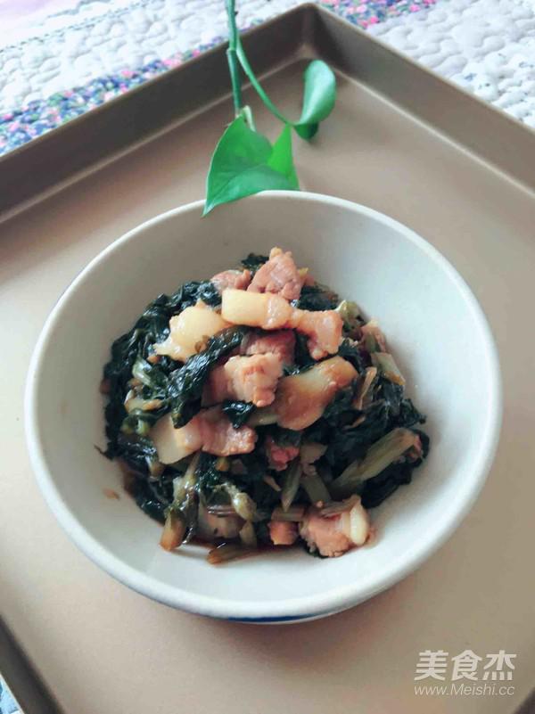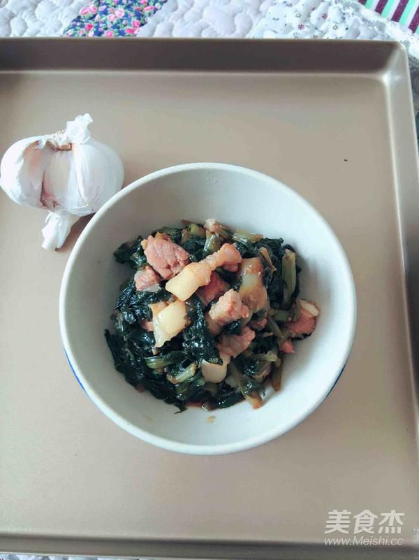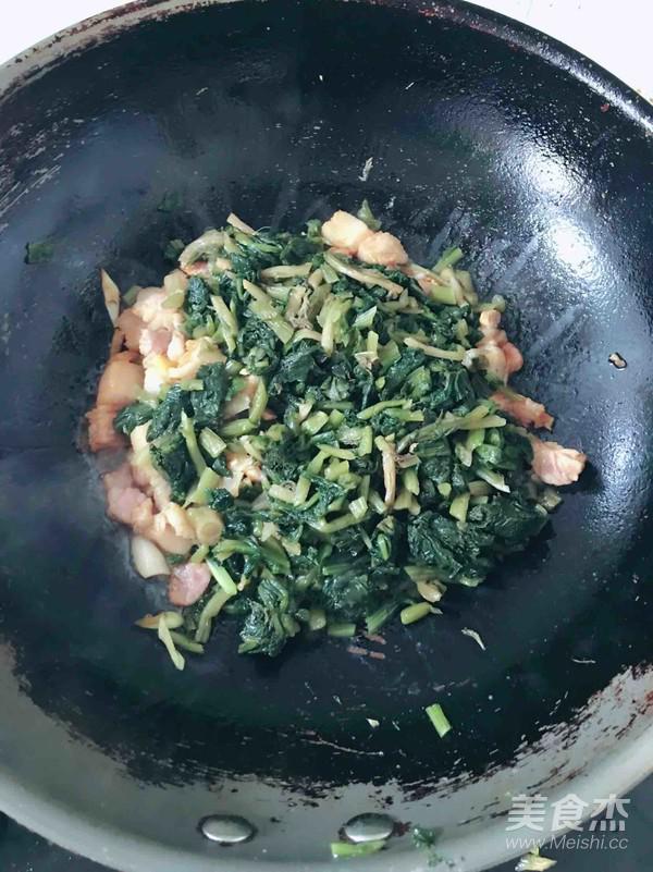 放入切碎的雪里蕻繼續(xù)翻炒。