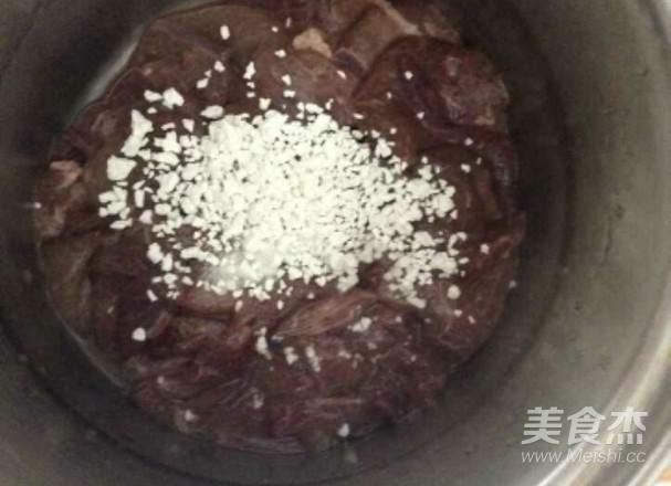 放到盆里,加水、鹽和少許醋浸泡,去掉血沫。