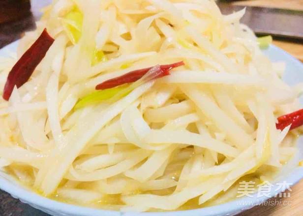 加入小米辣絲,翻炒均勻后加熱水少量醋,大概3分鐘后關火放鹽翻炒勻。