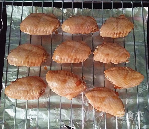 取出雞翅一個(gè)個(gè)排至烤架、表面刷層腌醬汁