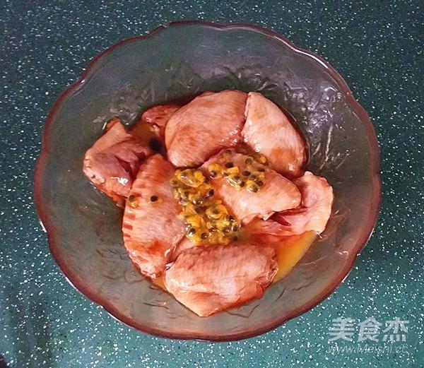 4、若單喝百香果會(huì)覺(jué)得很酸、但恰恰是這酸,搭配肉類(lèi)一起腌制或烹飪,果汁會(huì)慢慢滲入雞肉中,既達(dá)到去腥解膩目的,又帶著淡淡的果香,使得烤好的雞翅肉質(zhì)入味又細(xì)膩,非常好吃