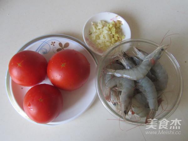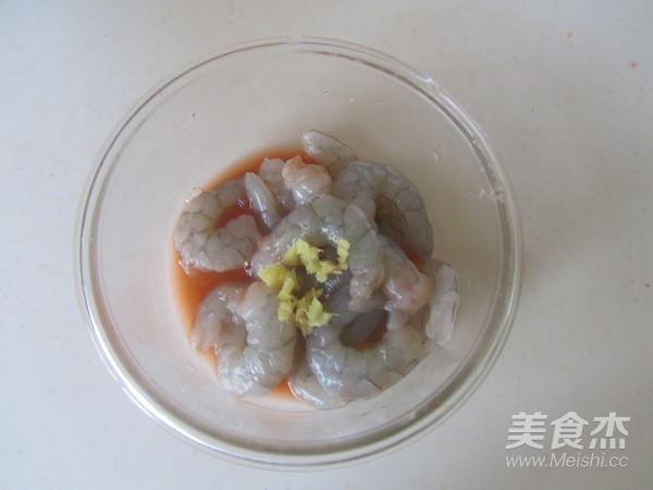 1.蝦仁去殼后, 用牙簽從二、三節處挑出蝦線, 再加入適量的鹽、淀粉、料酒等調味料腌制一下; 2. 番茄去皮的方法很多,我用火烤讓皮炸裂,就很容易去皮了。