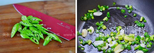 10.鍋中倒油燒熱,放入蔥花和蒜片