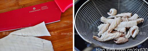 8.切好的魷魚放在水里稍微一燙就好了