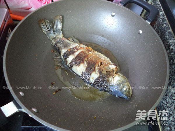 鯽魚洗凈,斜刀切3-4刀,然后放置瀝干水分
