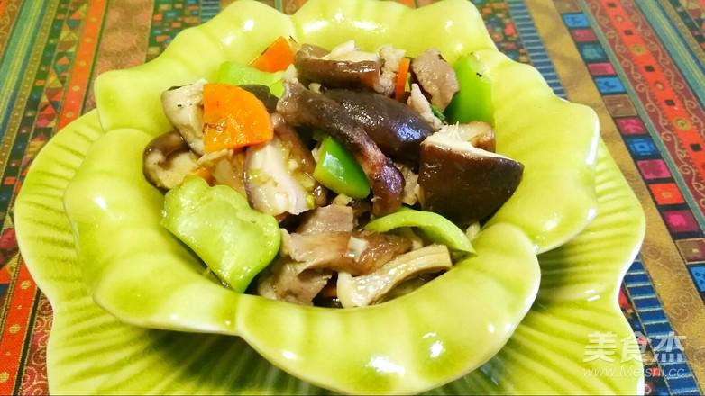 倒入香菇 ,胡蘿卜,翻炒。倒入適量鹽。