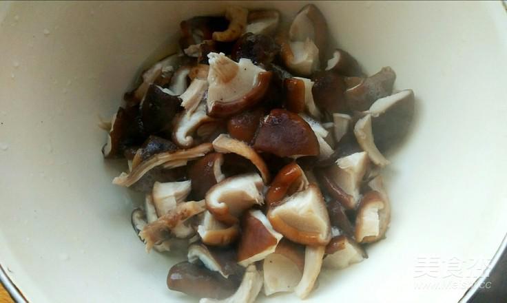 香菇去柄,掰成小塊。鍋燒開,把香菇放入水中焯熟。