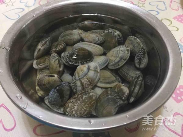 1.花甲用涼水泡上,放鹽讓吐沙(也可滴幾滴香油效果更佳)