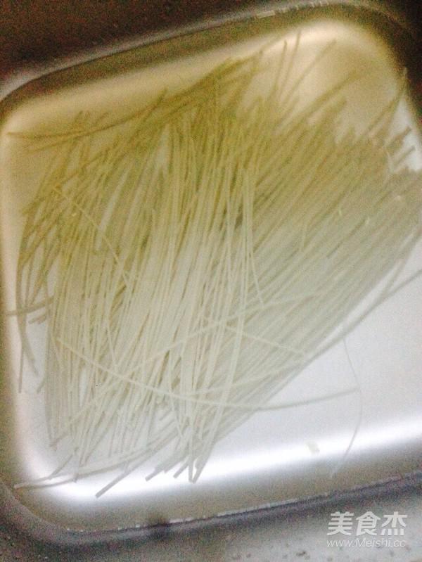 把生抽,蠔油,雞精和食鹽放入碗中 加入適量的開水調成湯汁。把煮熟的米粉,撈出放入湯汁中