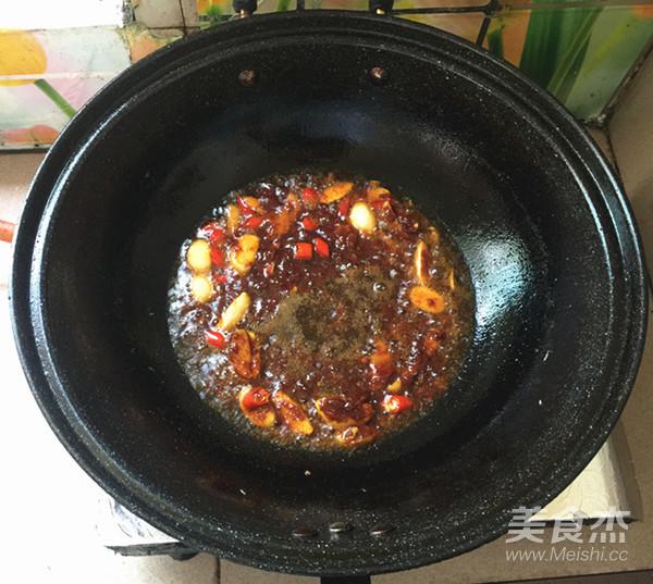 8.鍋中留底油,下生姜,大蒜,小米椒翻炒。