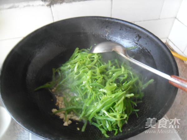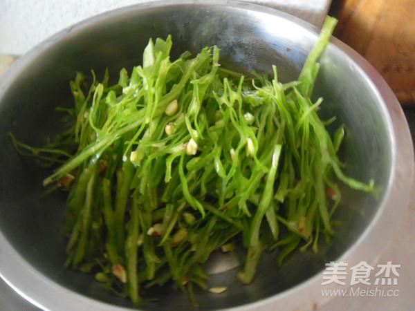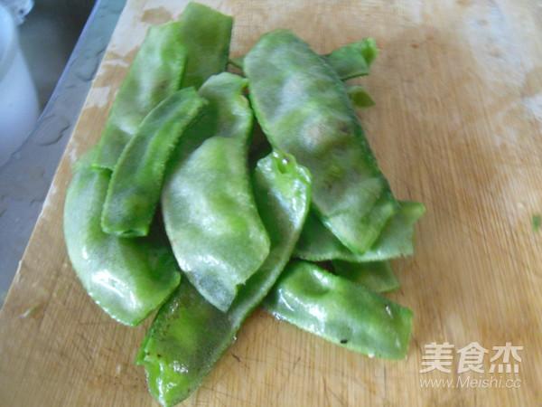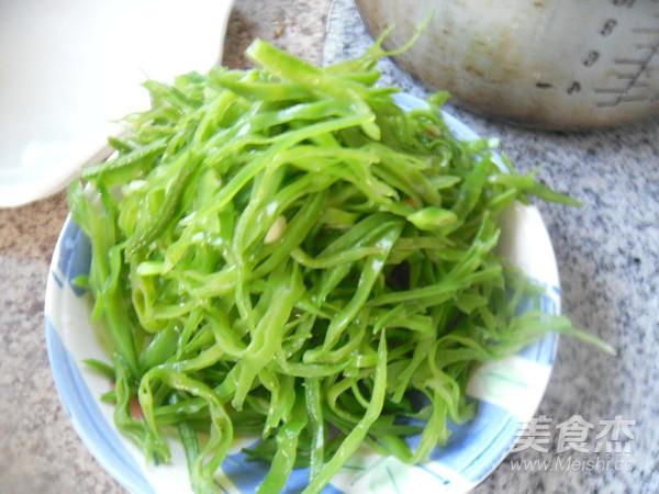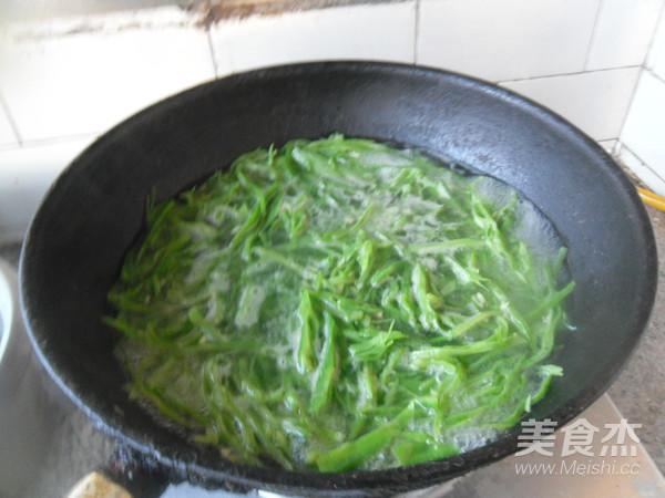 鍋燒開水,加少許鹽,放入扁豆絲,焯煮2分鐘
