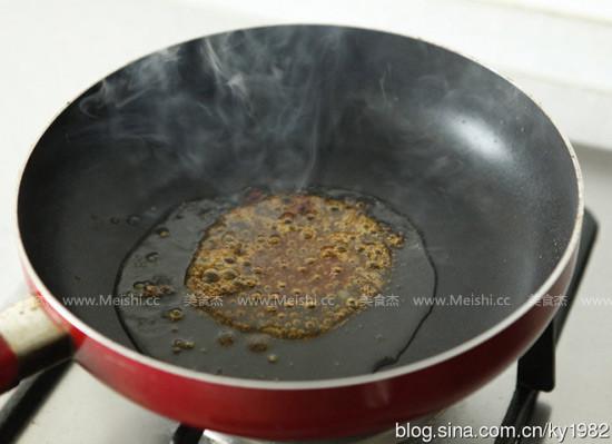 3.鍋燒熱后倒入植物油(約60毫升),調成中火,放入冰糖