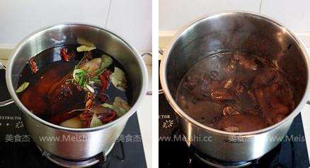 3.加入適量料酒、醬油、蔥姜、花椒、辣椒、大料、香葉、草果,大火燒開,轉小火燉2個小時