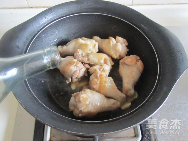 直至煎到雞翅根表面微微發(fā)黃后加入姜片進(jìn)去翻炒;