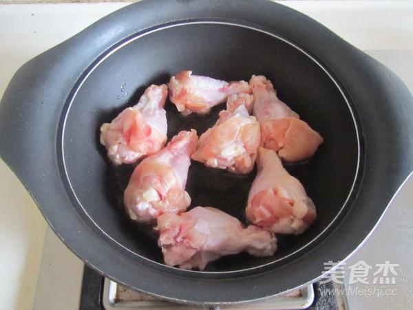 熱鍋涼油, 放入雞翅根進(jìn)去煎;