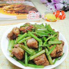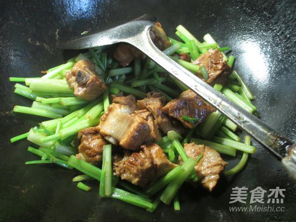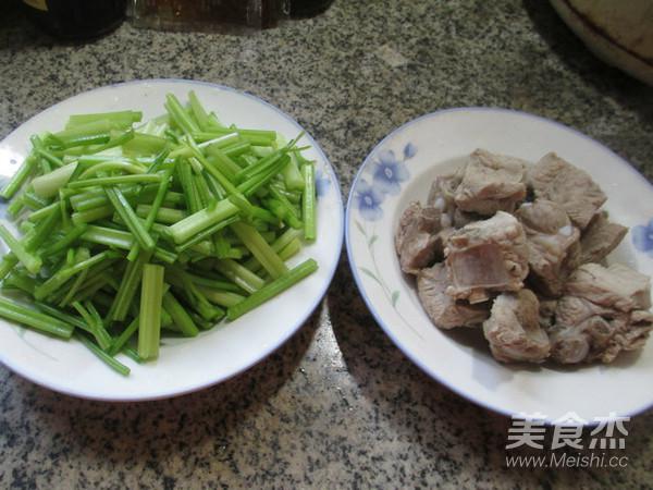食材:香芹(已摘去葉子去根清洗切段)、排骨(已煮熟)