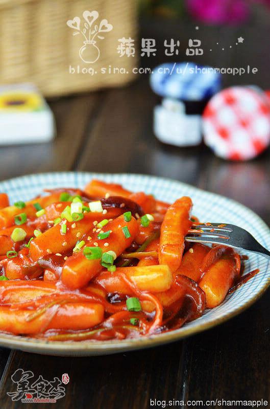 8.煮開以后放入年糕,讓年糕均勻地裹上辣椒醬