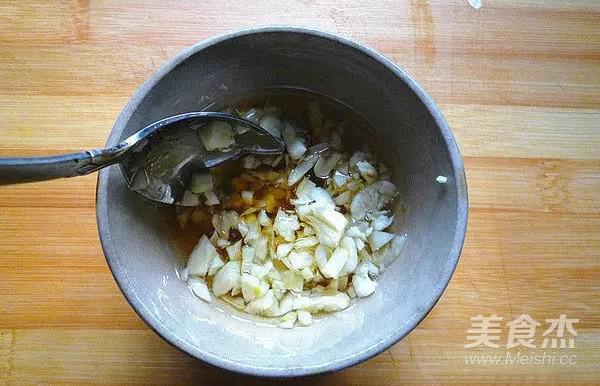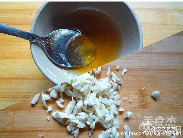 將放有食用油的蜂蜜放入蒜末拌勻腌制