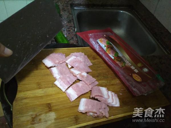 將切好的培根放入加有花生油的鍋中猛火炒2分鐘