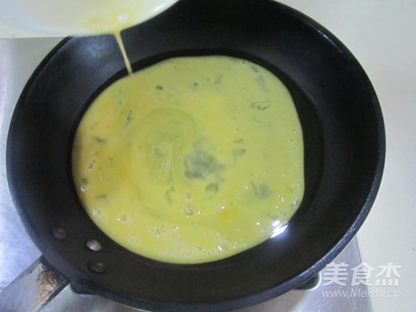 2.熱鍋涼油, 倒入雞蛋液進去煎;