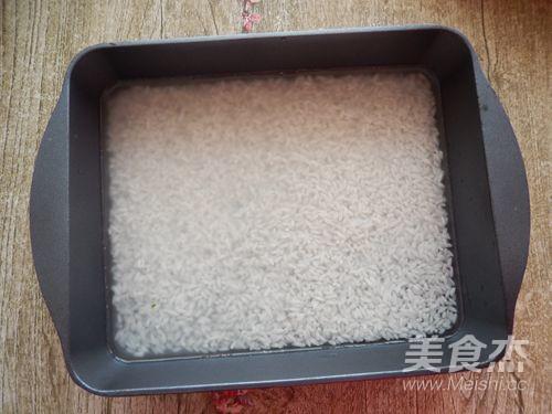取一個烤箱可用容器,水量以沫過米面約0.5CM為宜。
