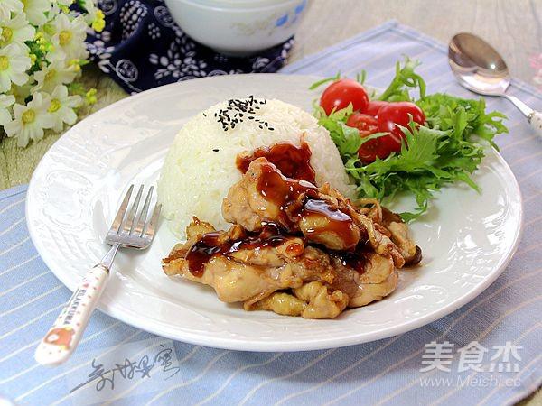 雞腿去骨,加入照燒醬腌制15分鐘。或提前一夜腌制。