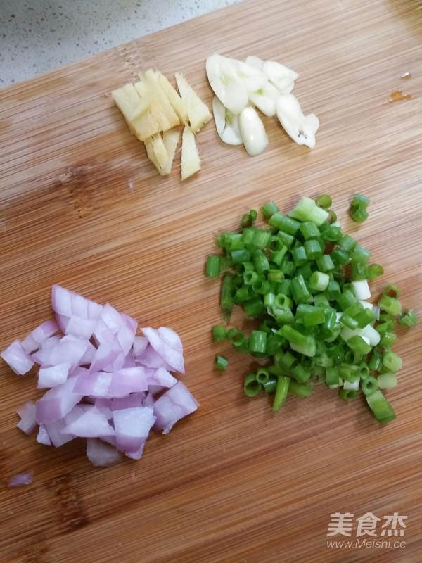 3.瘦肉剁成肉沫拿生粉料酒腌制備用。