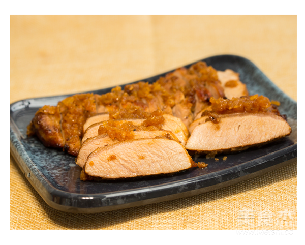 溫度設(shè)置為200℃,上下管、烤30分鐘。滿15分鐘翻轉(zhuǎn)一次,翻轉(zhuǎn)的時候在肉的表面再鋪上梨蓉