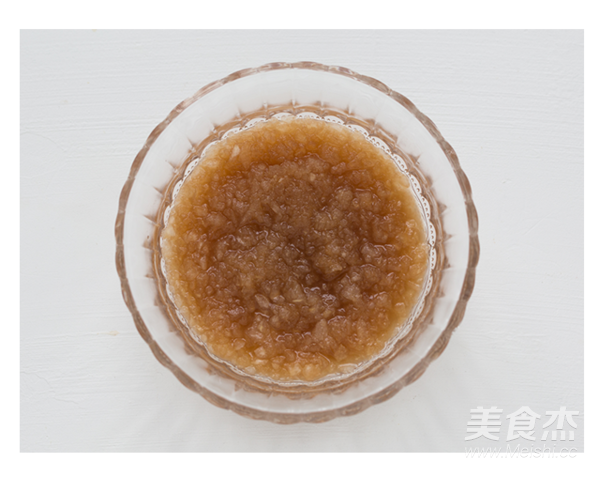 加入醬油、香油、料酒、蠔油,將大蒜切成片與黑胡椒和鹽一起加入梨蓉中,攪拌均勻