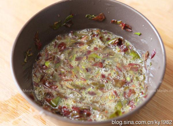 3.將香椿碎加入蛋液內攪勻