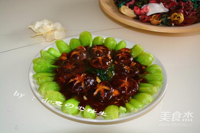 燒至3分鐘左右,待湯汁濃稠,將湯汁澆在油菜葉子上面,香菇擺在上面即可。