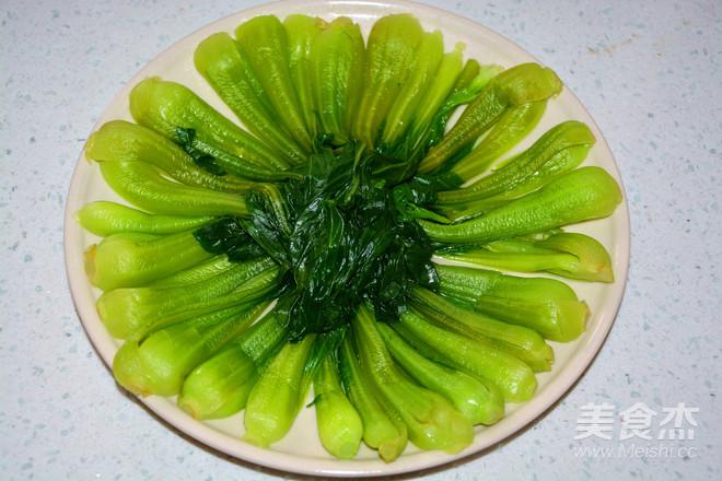 油菜煮熟后撈出擺在盤子四周。