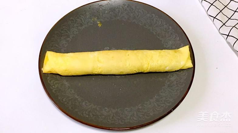 8.從一側開始卷,卷成緊實的蛋卷。水開蒸10分鐘左右。