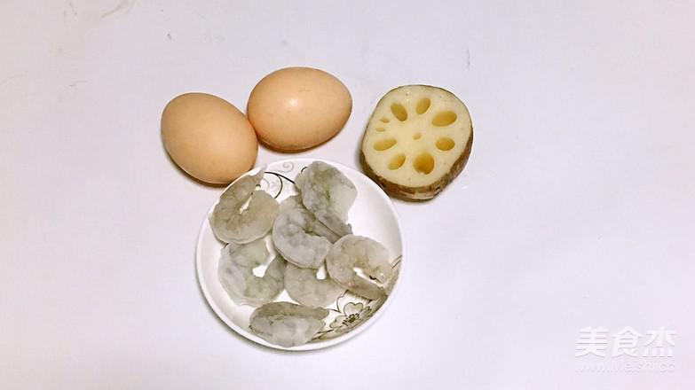 1.食材準備:蝦仁(新鮮蝦去殼后)/50克,蓮藕/50克,雞蛋∕2個