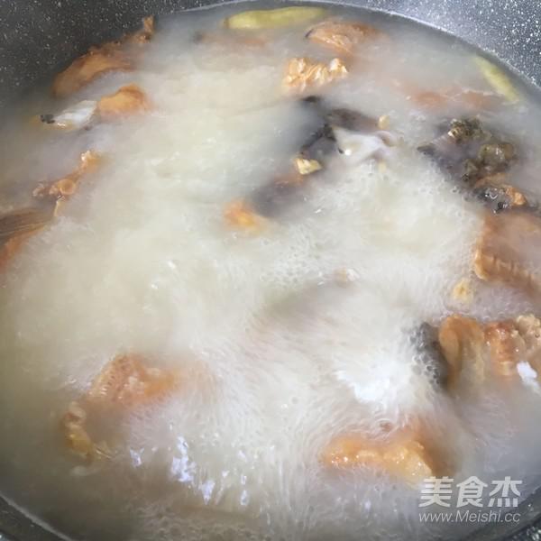 加入熬好的魚湯,大火十分鐘,小火十五分鐘