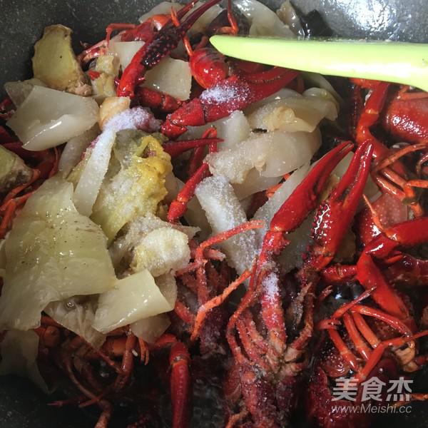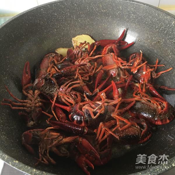 放入龍蝦翻炒至殼體變紅