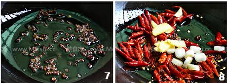 7.鍋內放新油少許,以中小火將花椒炒變色吐香味